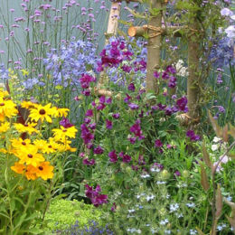 The garden won a Silver-Gilt Flora Medal, and Best Small Garden of the Show at Hampton Court Palace Flower Show. The 'Snakes and Ladders Garden' featured planting on 3 different levels, and utilised all natural materials: sustainable timber, choir rope and gravel.
