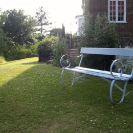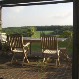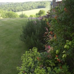 The clients needed a level lawn and outside seating and dining area in their large, sloping country garden overlooking rolling countryside